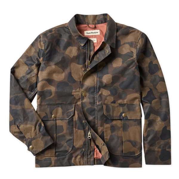 A classic mid-length field jacket, the Shallowford Jacket is the newest edition to our line of waxed cotton outerwear. The Shallowford Jacket’s 8oz waxed, weatherproof shelter cloth develops a rich patina over time. The Shallowford Jacket drapes right below your waist, with set-in sleeves to provide flattering structure through the shoulders. Gusseted underarms and a bi-swing back provide mobility. Large, pleated front pockets offer ample storage, secure with snap flaps, and conceal lined handwarmer pockets that sit comfortably behind the main front pocket. The Shallowford Jacket’s center front closes with a durable antique brass zipper and snap storm flap. The sleeves are lined with a smooth polyester twill that glides over layers with ease. The Shallowford is complete with a nod to our Alabama roots: a cotton liner inspired by Alabama red clay. Available in Tobacco, Rye Brown and Classic Camo colors. Made in the U.S.A. with imported materials.